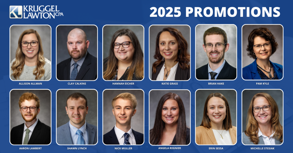 Kruggel Lawton CPAs is delighted to announce the promotion of twelve of its professionals in the firm.